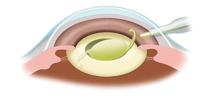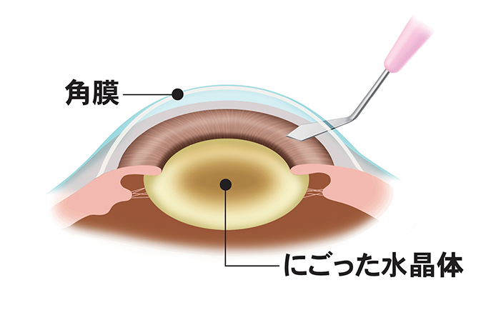 手術では、約2.4mmの非常に小さな切開を行い、白く濁った水晶体を超音波で砕いて吸引し、その後に人工の眼内レンズを挿入します。