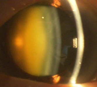 白内障が進行すると水晶体が黄色から茶色になり非常に硬くなります。さらに進行すると成熟白内障といって真っ白になり全く見えなくなることがあります。