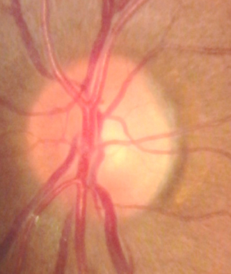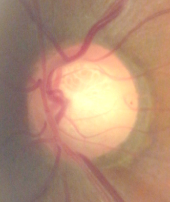 緑内障の視神経では視神経乳頭のへこみが大きく、視神経の色が悪くなることがあります。